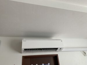 【札幌市西区】弊社にてボイラー交換工事をご利用くださいましたお客様より、リビングでご使用のエアコン交換工事のご依頼をいただきました。ご希望で設置場所をお部屋の角から中央へ設置いたしました。日立製エアコンからダイキンS284ATES-W(畳数目安 10畳用)へ交換。結露水を利用して熱交換器の汚れを洗浄する機能等を搭載したスタンダードモデルの製品です。